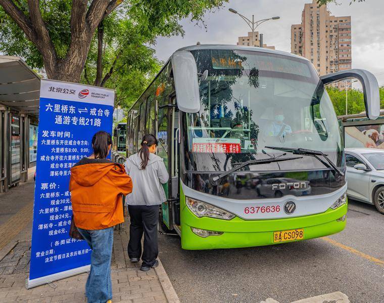 此外,10月1日至10月8日期间,市民游客还可乘坐通游专线21路游览潭柘寺、戒台寺两座千年古刹,线路由六里桥东至戒台寺,途经潭柘寺。六里桥东发车时间8:00、9:00,戒台寺至潭柘寺发车时间:9:30、14:30,潭柘寺至六里桥东发车时间12:00、15:00。